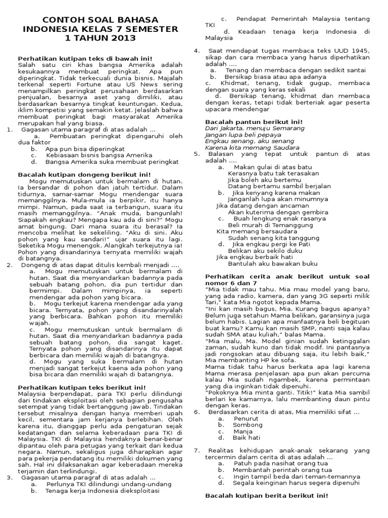 Kumpulan Soal Bahasa Indonesia Smp Kelas 7 Semester 1 Didno76 Com